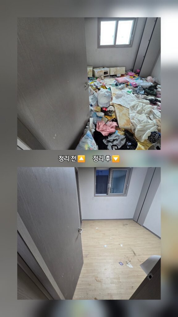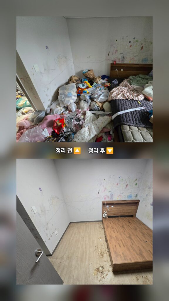 쓰레기와 박스가 쌓여 있던 방이 청소 후 정말 환하게 달라졌습니다. 작은 먼지 하나까지 신경 써주셔서 깔끔하게 정리된 걸 보고 감탄했어요. 혼자 살면서 청소가 힘드신 분들께 꼭 추천드리고 싶은 서비스입니다.